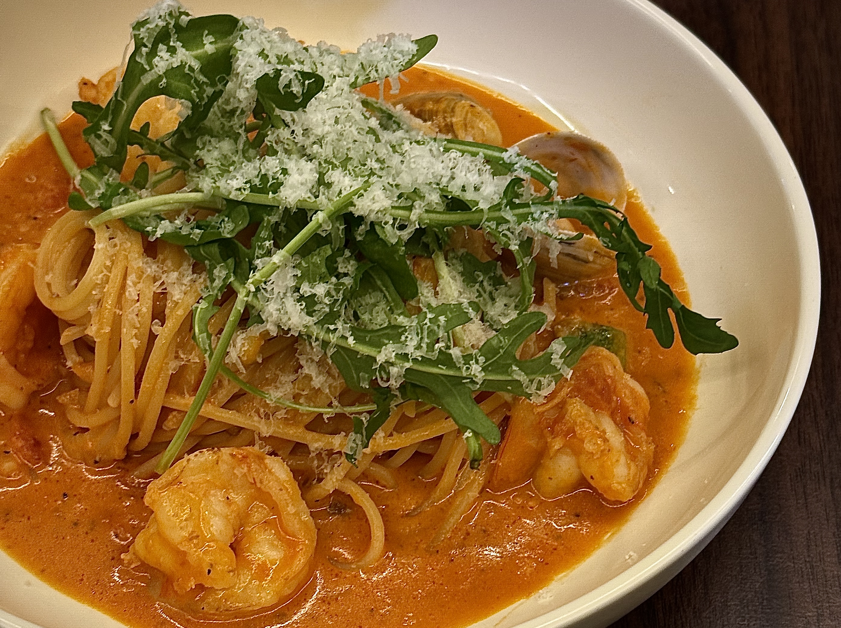 짧은설명 새우,모시조개,바지락과 수제토마토 소스,프랑스산 크림소스로 만든 로제파스타