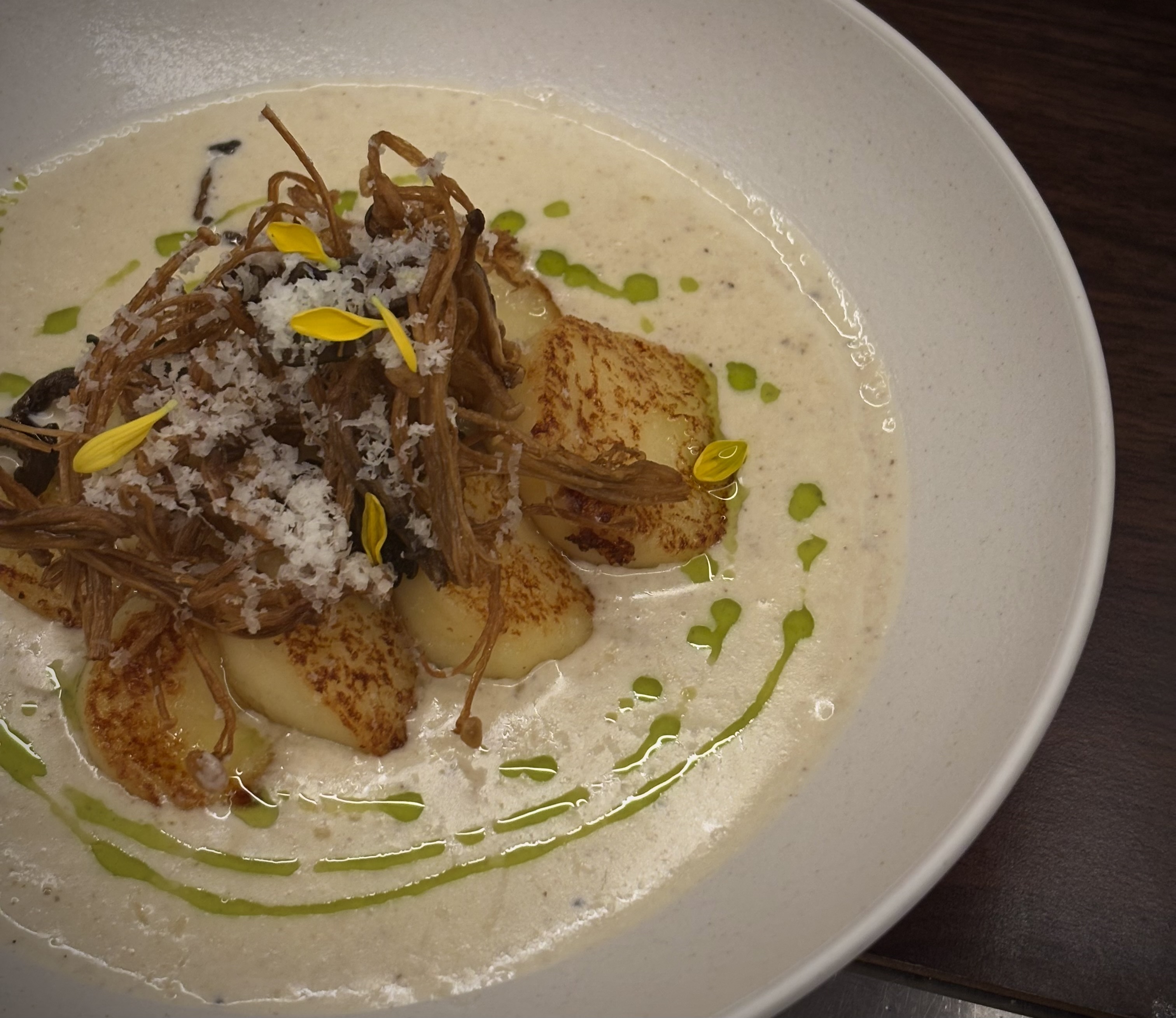 짧은설명 포르치니, 치자밥, 프랑스산 크림, 구운 느타리가올라간 리조또